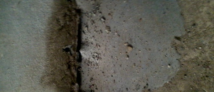 Thành bể có hiện tượng nứt. Vết nứt dài khoảng 2m và có hiện tượng nứt xuyên vách thành bể.